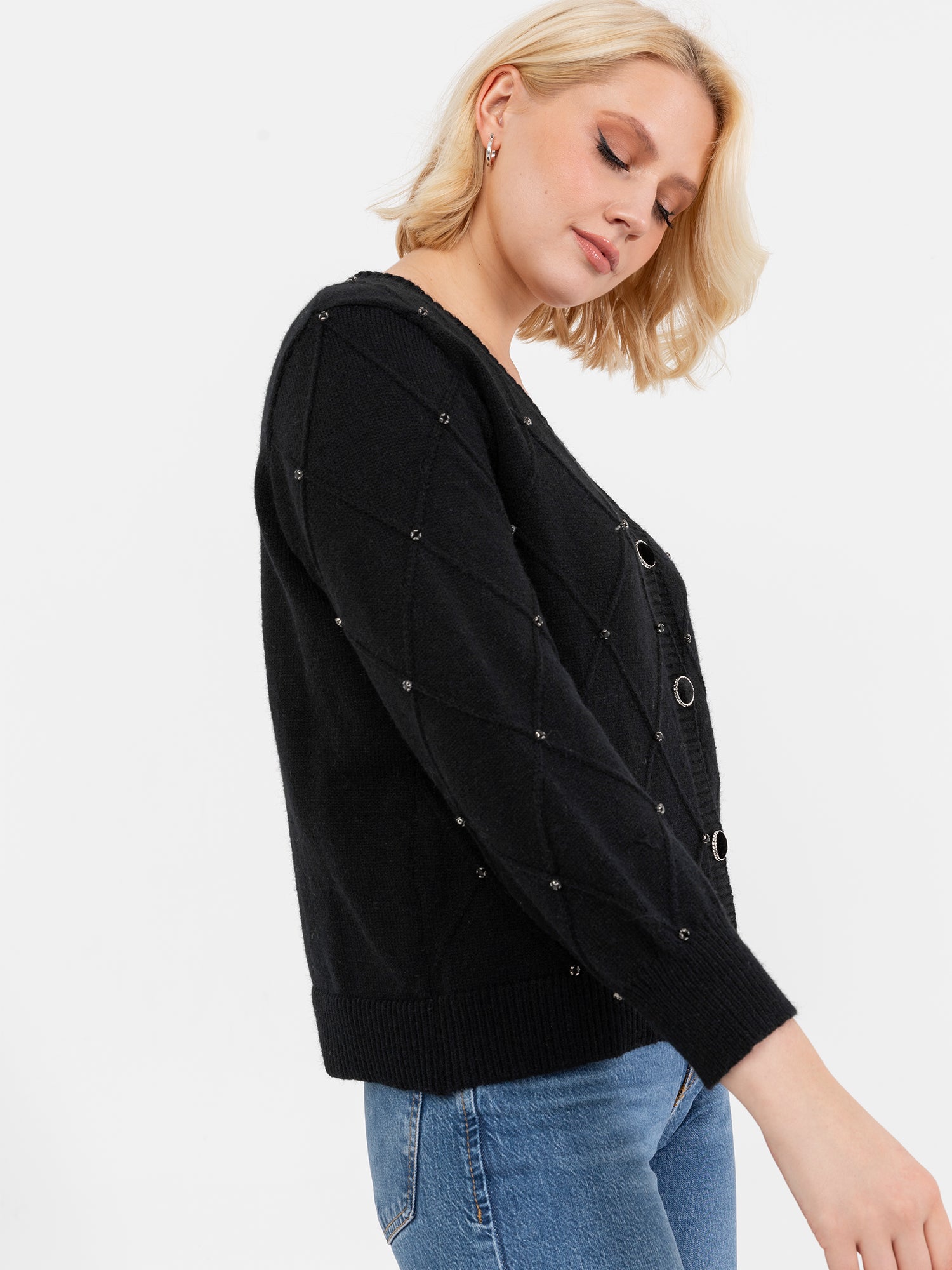 Elevate your knitwear game with this chic co-ord set. Black knitted cardigan and tank top ensemble is adorned with eye-catching diamante embellishments creating a luxurious and sophistication look. Experiment with countless outfit combinations ensuring a fresh and stylish look each day!