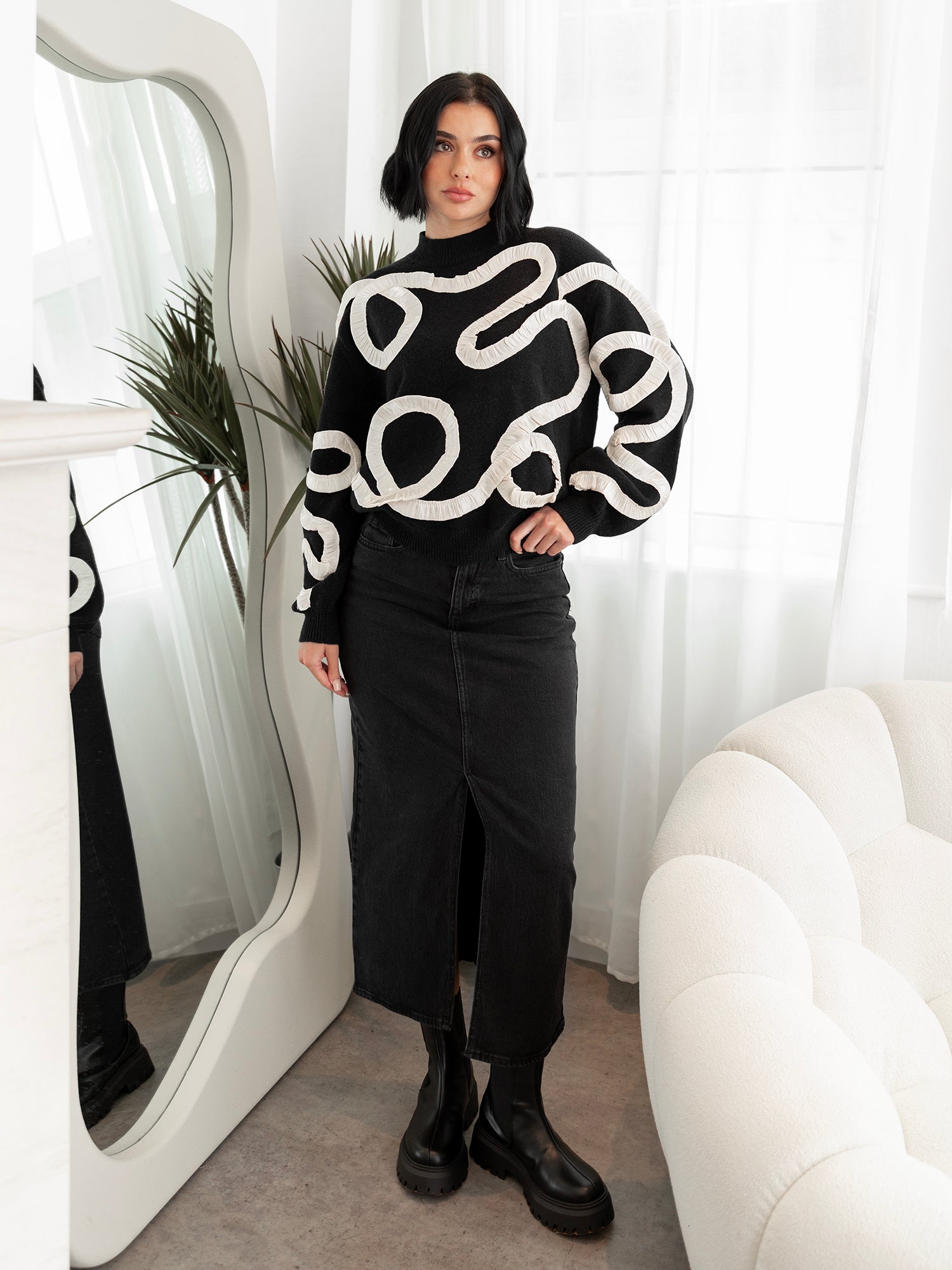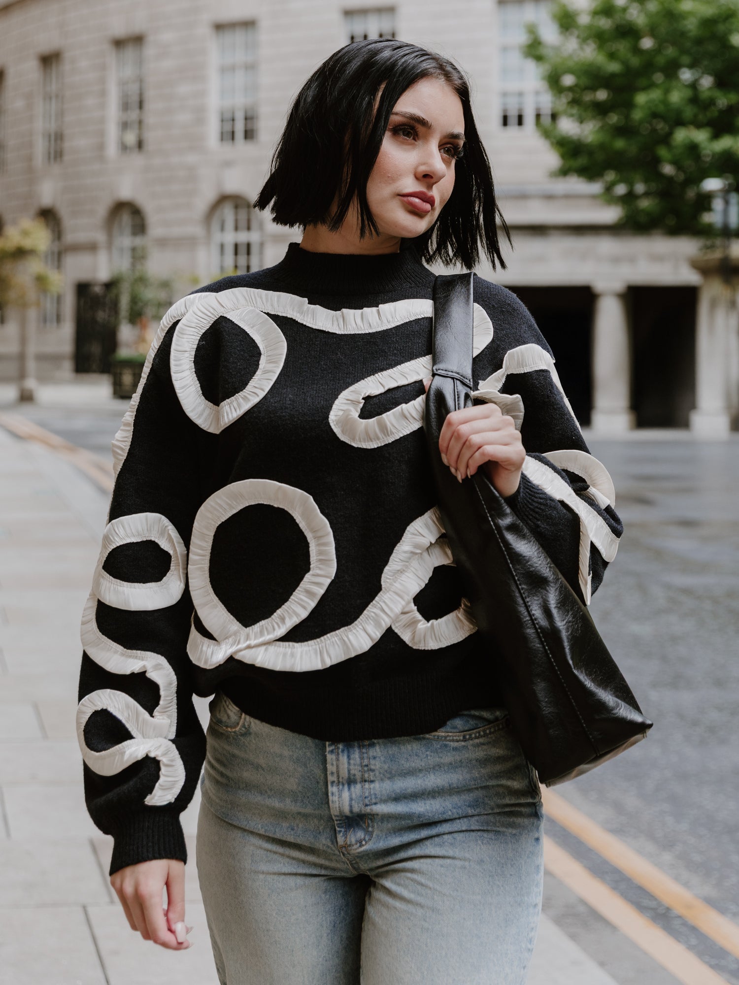 Lovedrobe Black Jumper with Contrasting Satin Squiggle Applique
