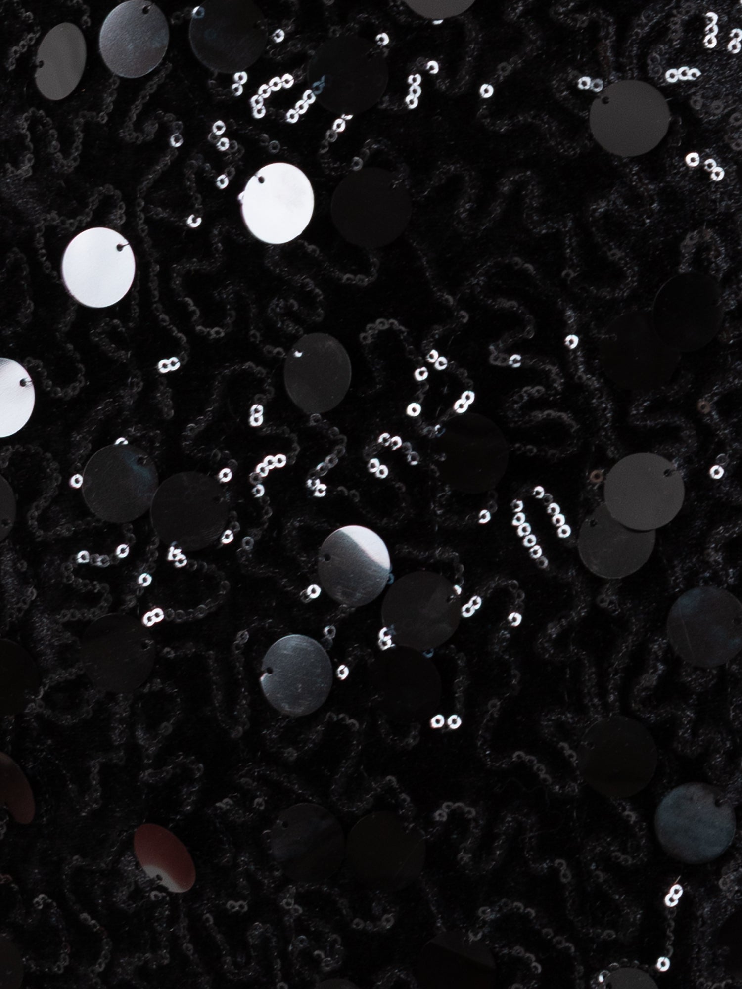 Exude glamour in this stunning party dress from Lovedrobe. Designed in an adjustable wrap silhouette, this mini dress is adorned with shimmering black sequins in varying sizes, adding depth and texture to its timeless appeal. Velvet trim around the neckline extends into waist ties for a sophisticated finishing touch. Style this long-sleeved dress with barely-there heels and minimal accessories.
