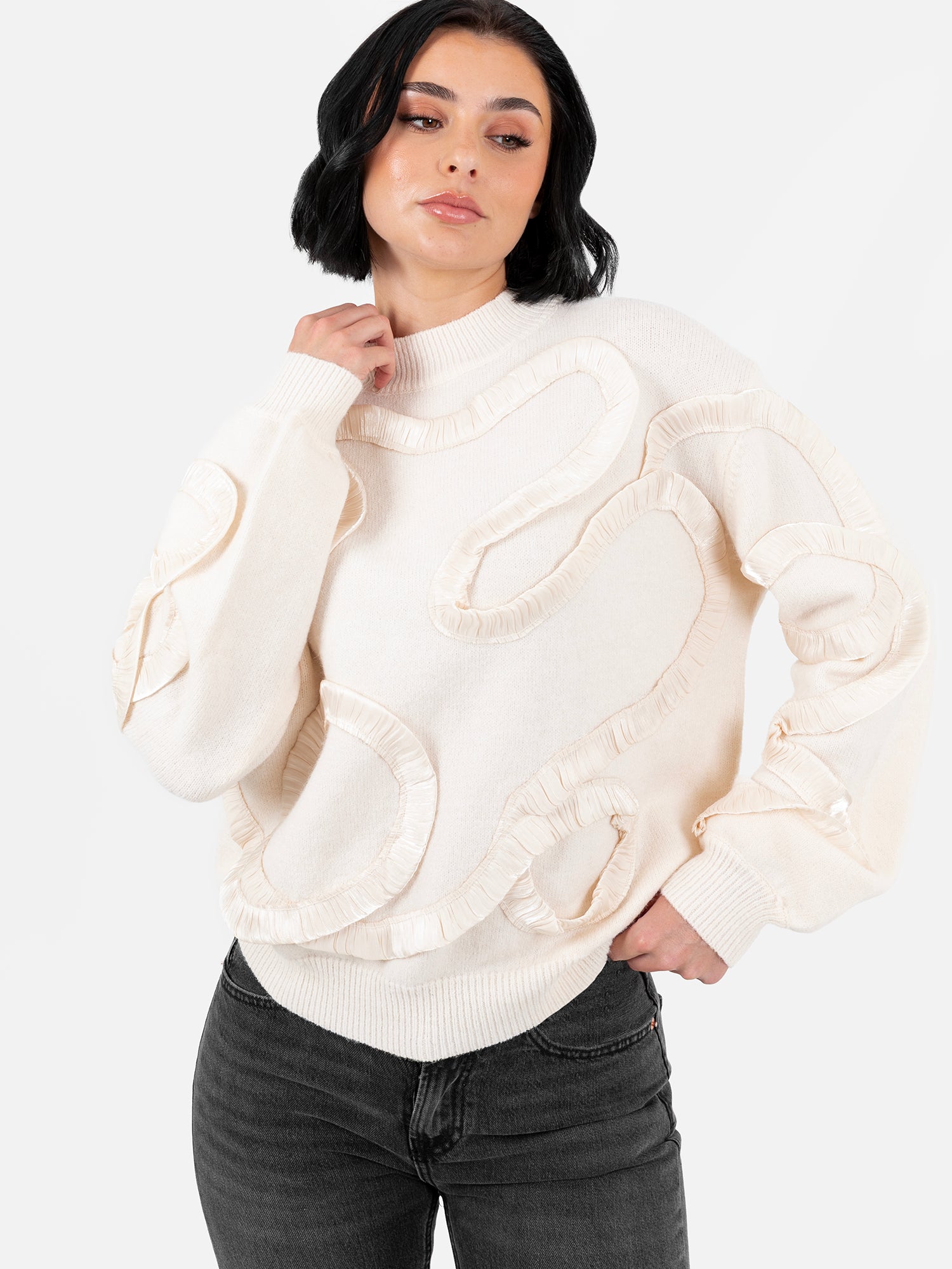 Lovedrobe Cream Jumper with Satin Squiggle Applique