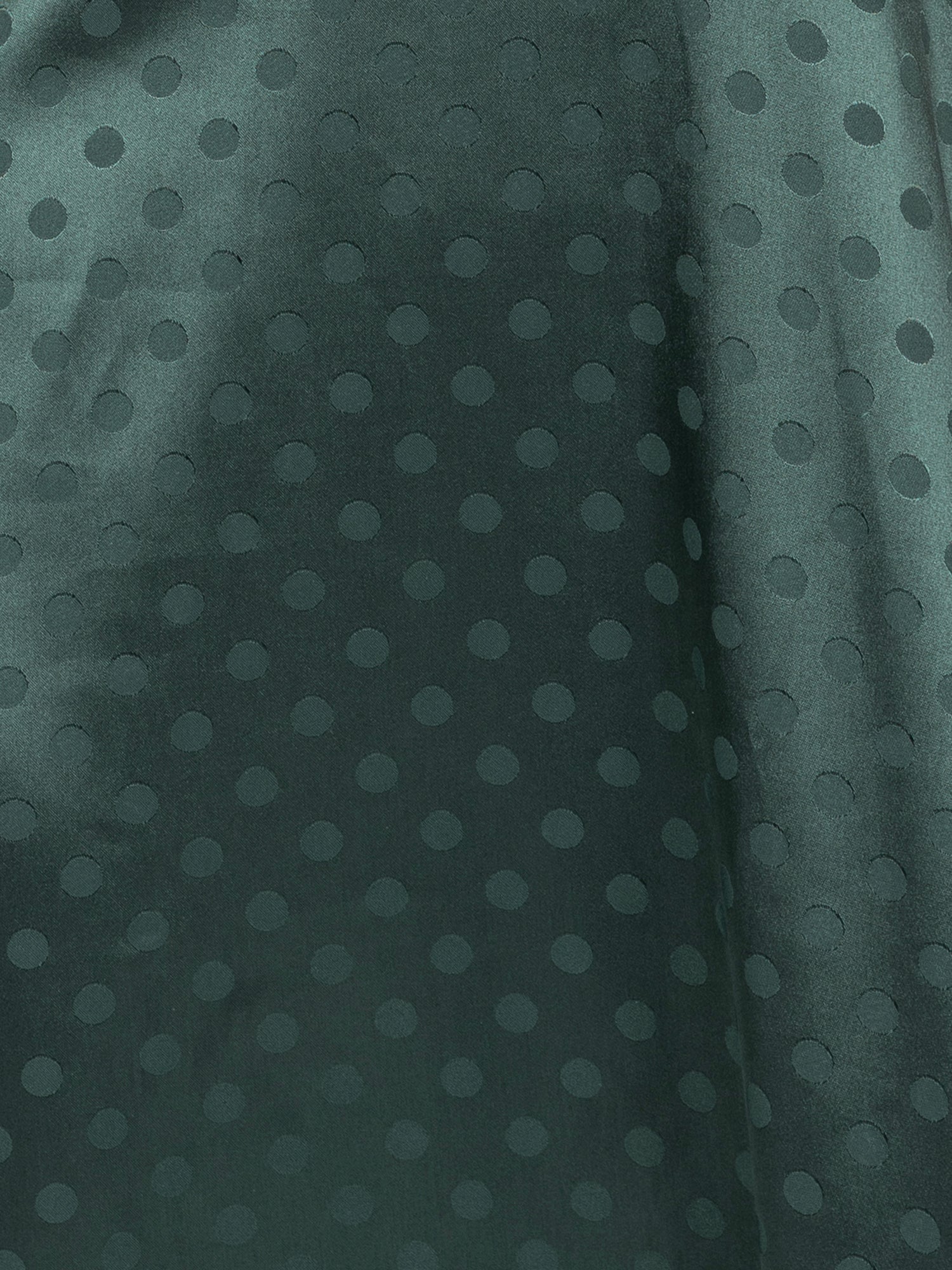 This emerald green midi dress is a standout choice for evening events, destined to be a highlight in your occasion wardrobe. Crafted from soft satin with a sophisticated spotty jacquard finish, it creates an alluring silhouette with a flowing character. The V neckline and empire waistline, adorned with black lace trims, enhance its flattering shape, while the shirred elasticated waist at the back ensures a comfortable fit. Pair this midaxi dress with black heels and delicate gold accessories for a refined look.