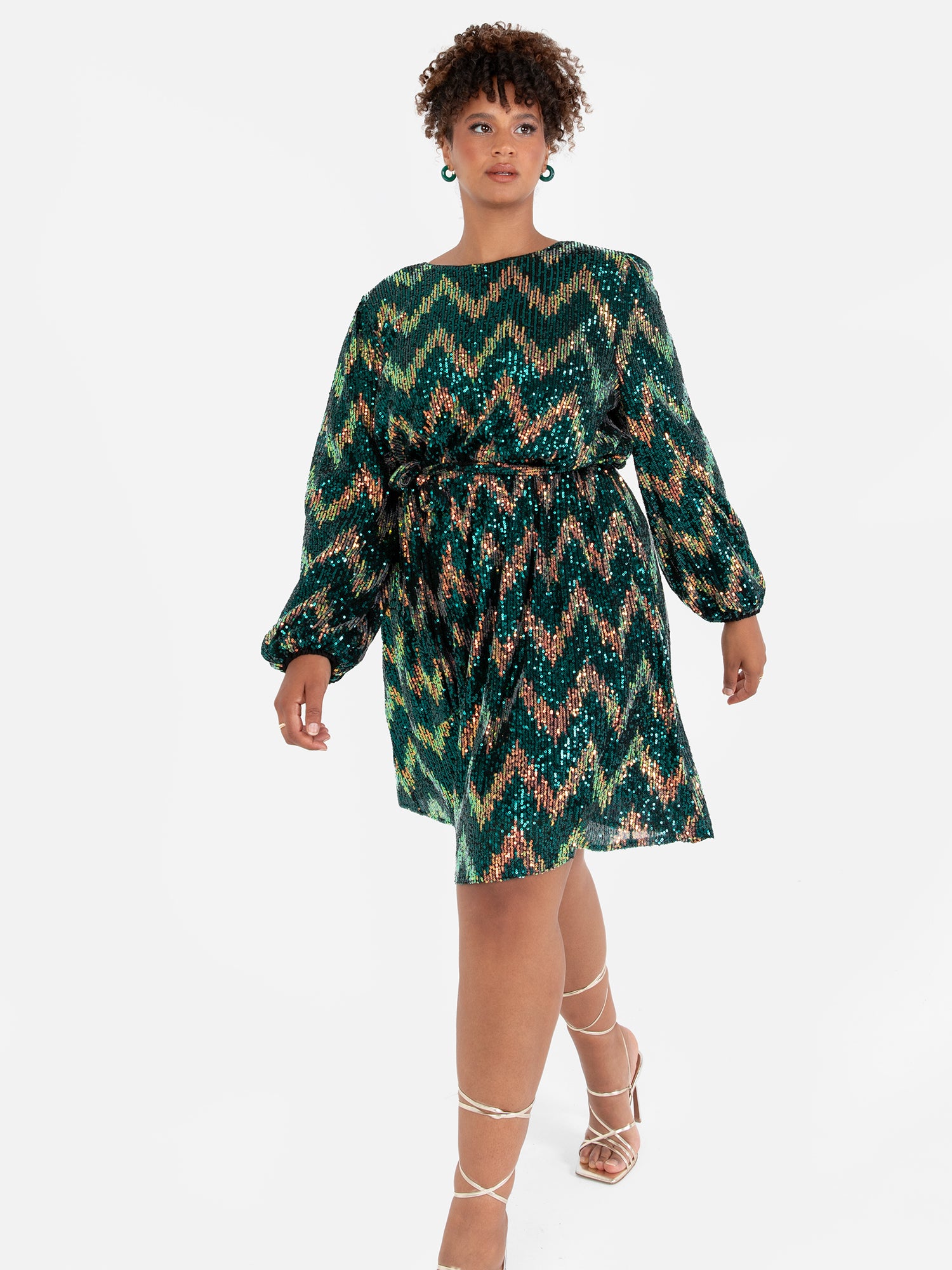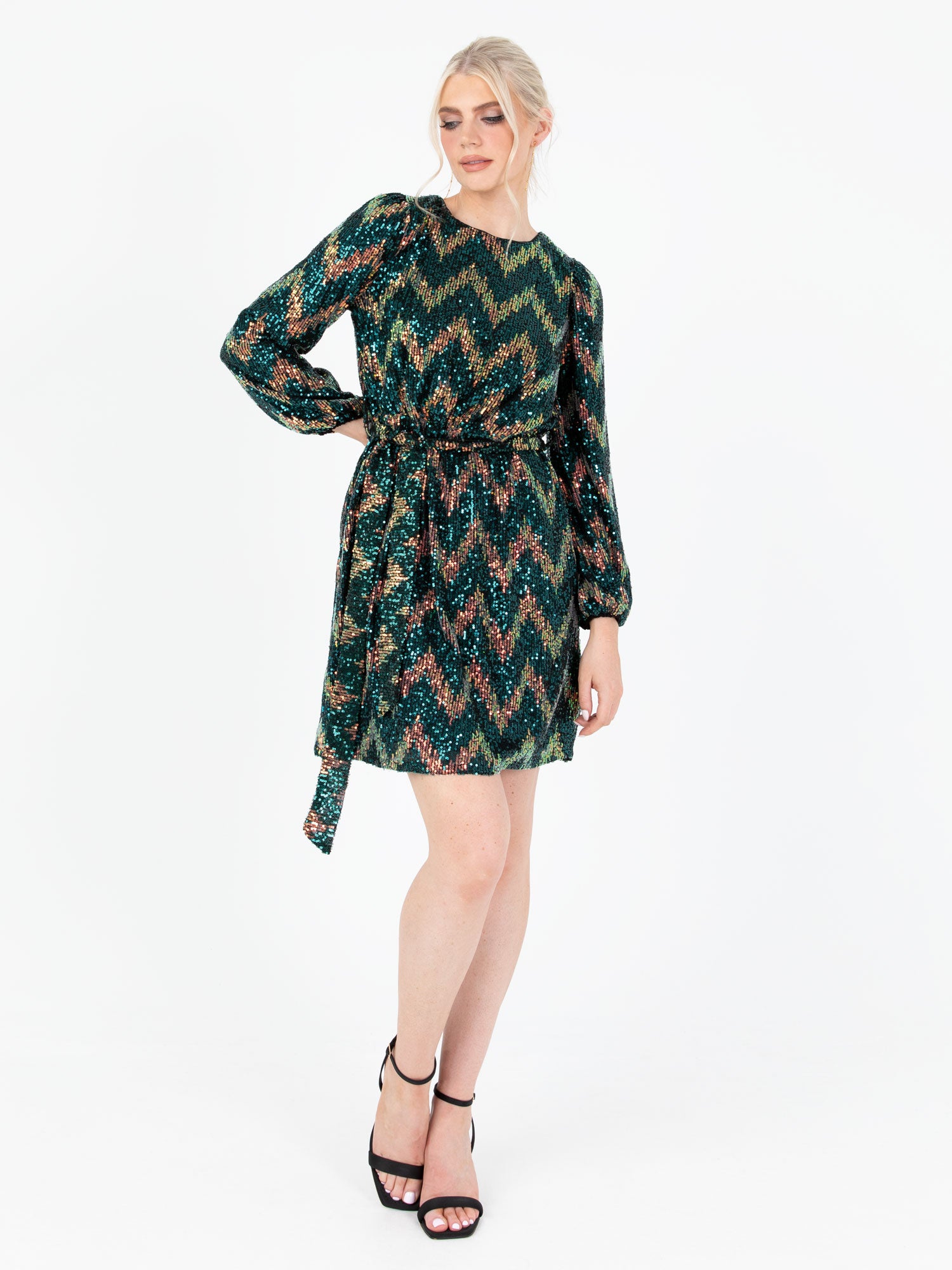 Lovedrobe Luxe Zig-Zag Sequin Maxi Sleeve Belted Mini Dress