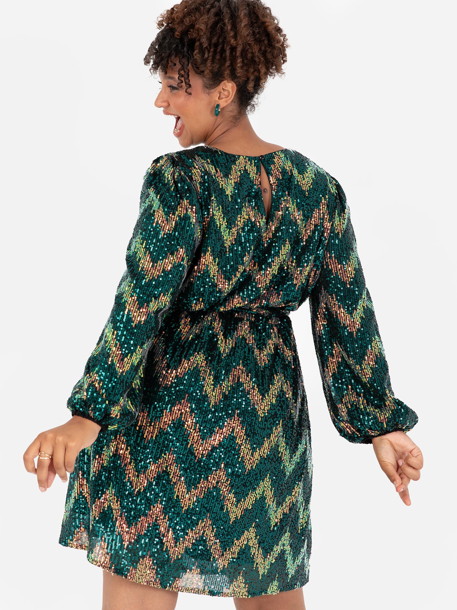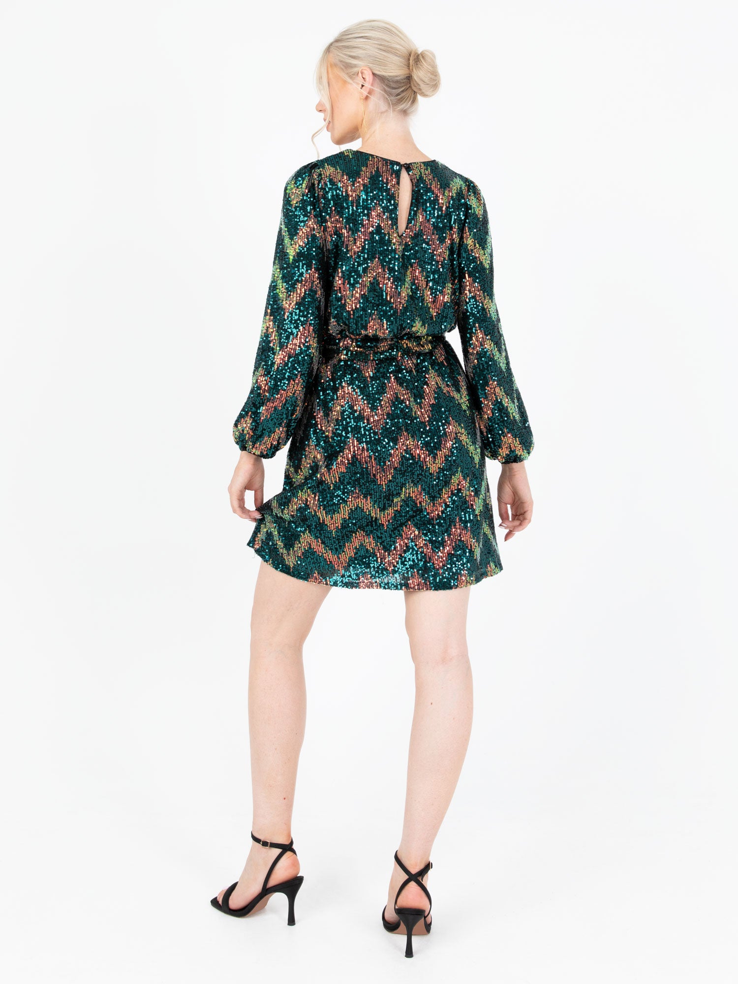 Whether you're attending a cocktail party or a special celebration Lovedrobe’s Zig-Zag Sequin Mini will make you stand out from the crowd. Designed with on-trend features such as the elasticated long sleeves round neckline to the front and a keyhole surprise to the back and self-tie sash that lets you further adjust the elasticated waist for a more cinched finish. Style this embellished mini dress with statement earrings and platform heels to further play into the party look.