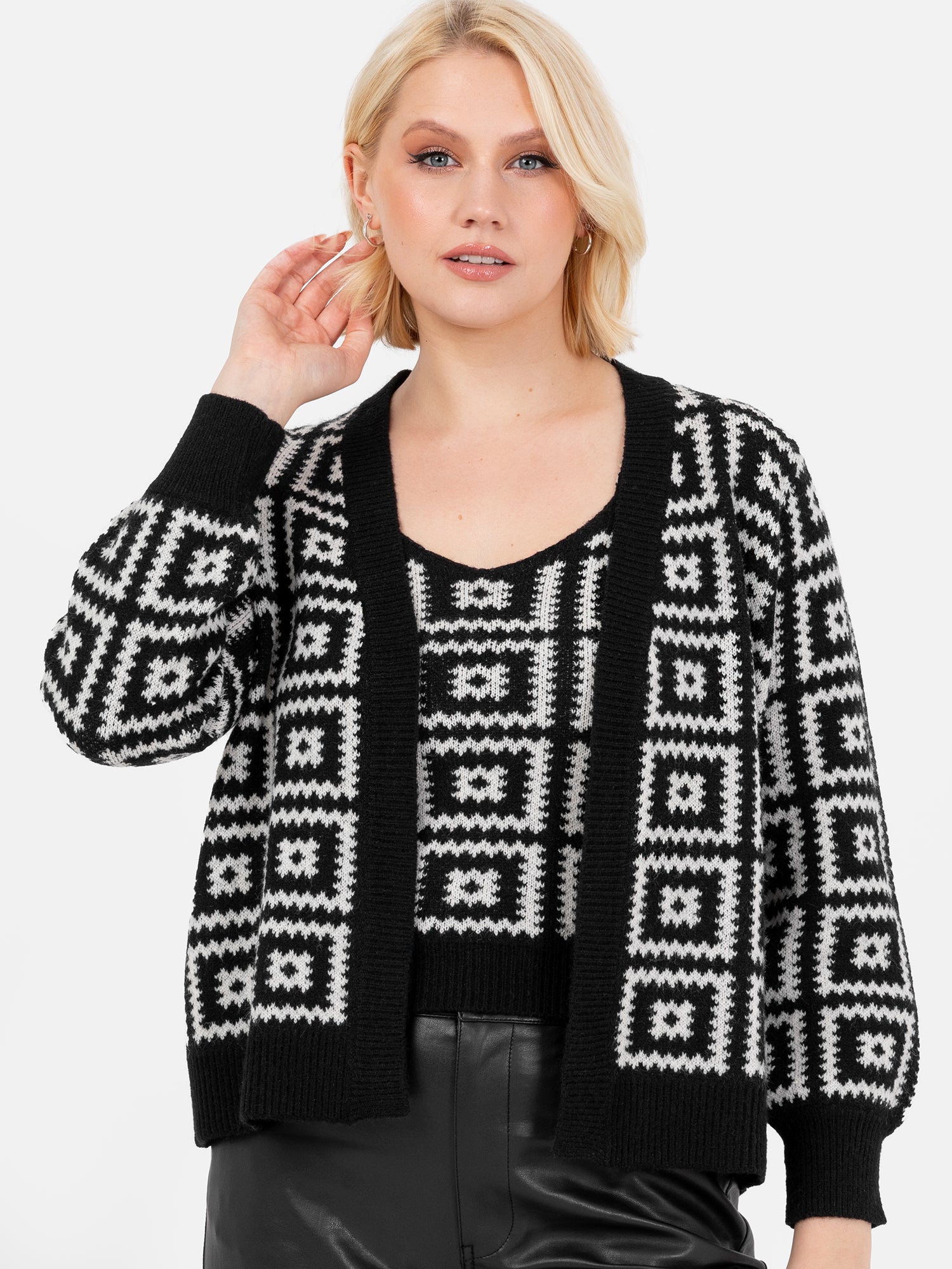 Lovedrobe Monochrome Granny Square Cardigan & Crop Top Set