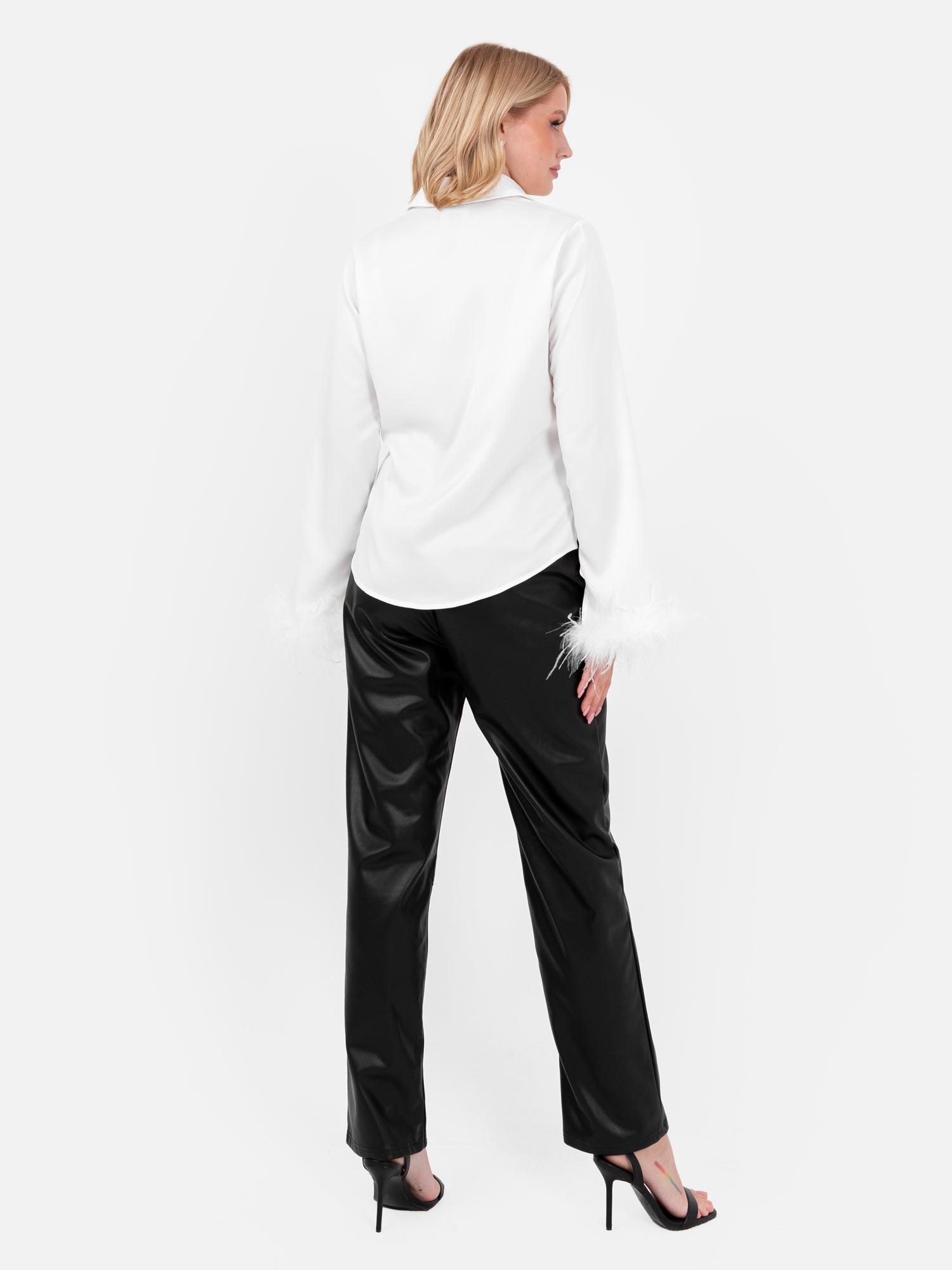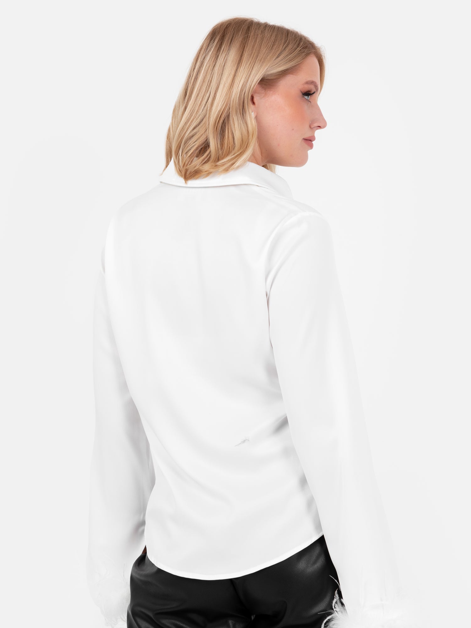 Lovedrobe White Satin Shirt With Feather Cuffs